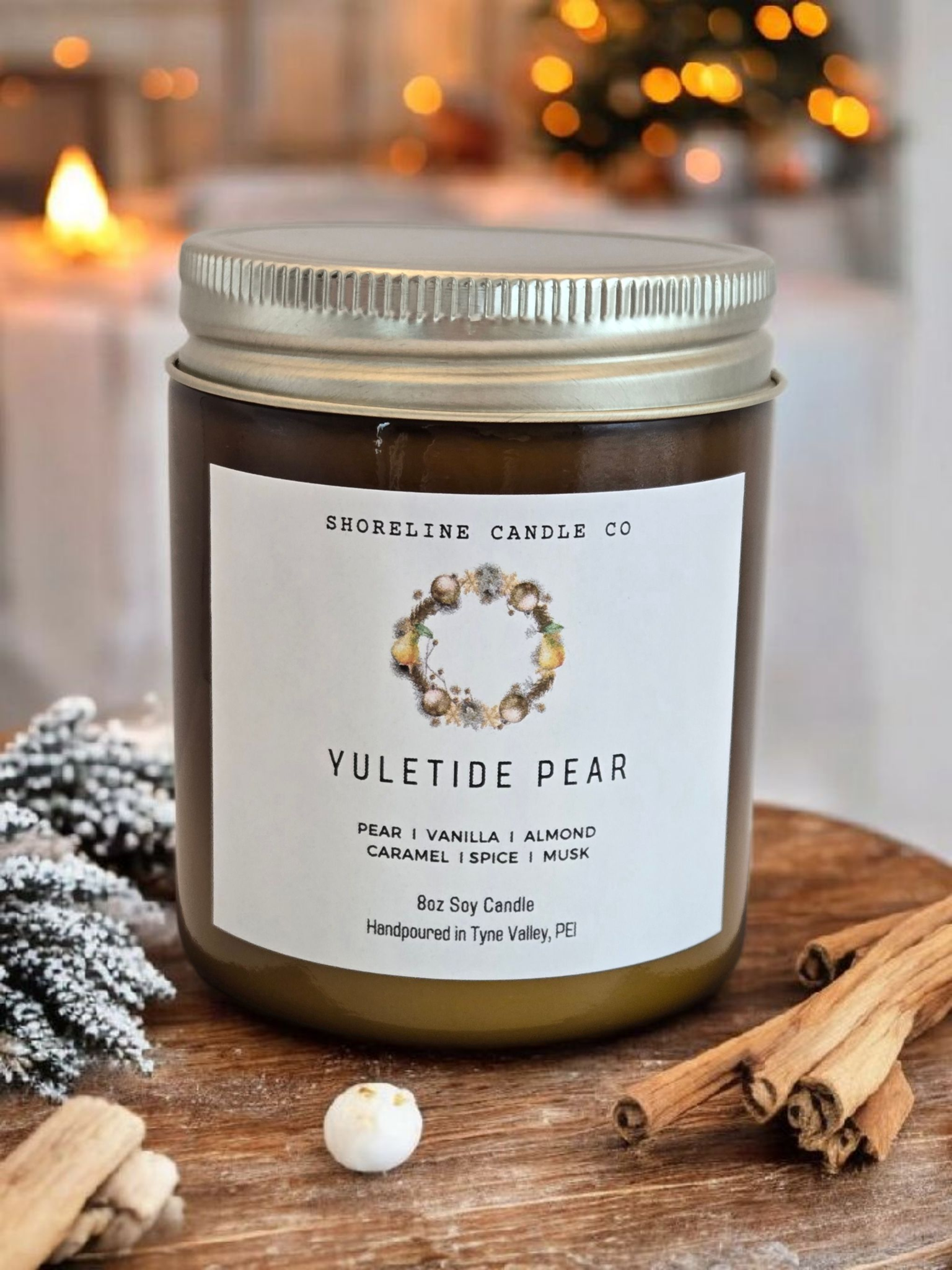 Our amazing Holiday Collection is now on Sale! Beautiful amber glass gives a warm glow to any occasion. Comes with a metal lid and is reusable or recyclable! This jar holds 8oz of wax with a 50-60 hour burn time.